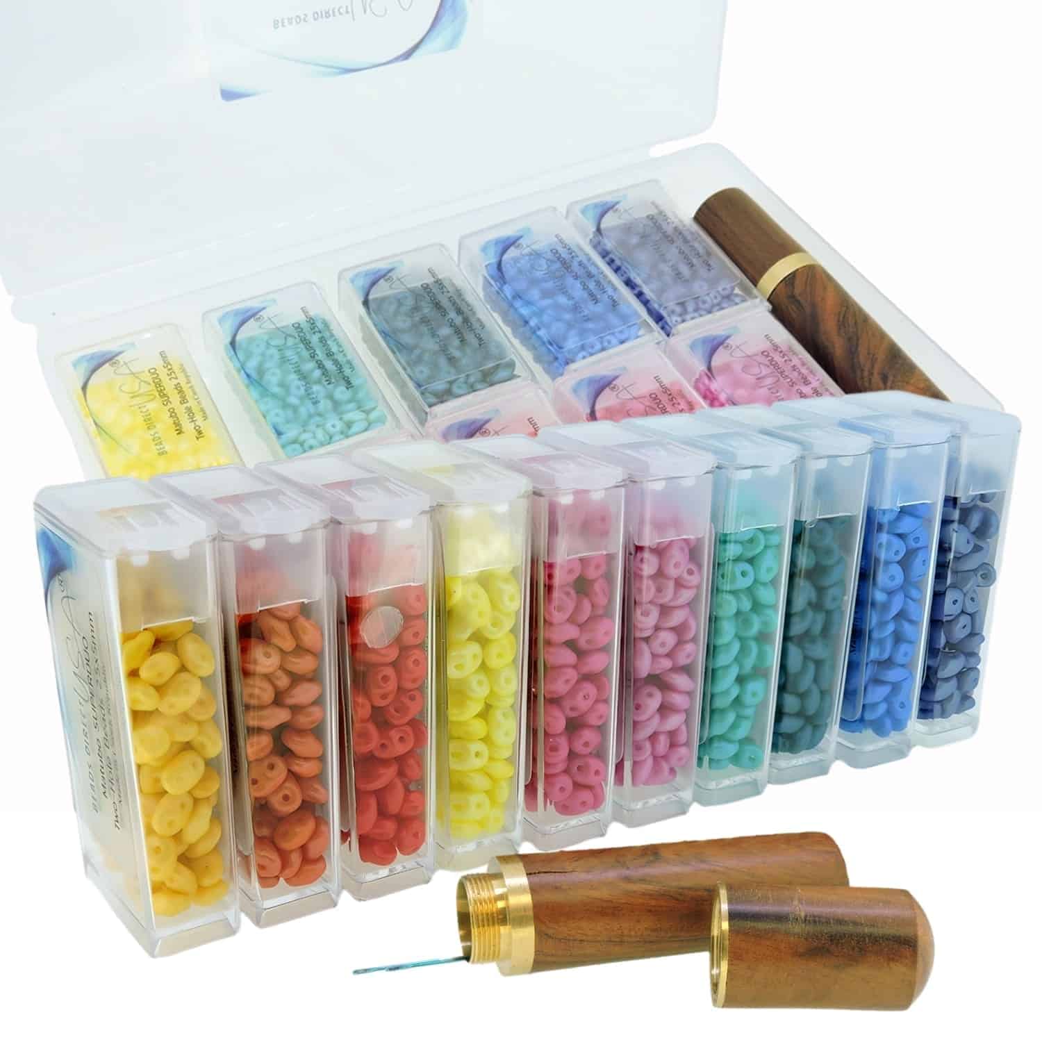 - Additionally, the set features a wooden needle holder complete with two Size 11 Coloreyes needles for convenient beading.