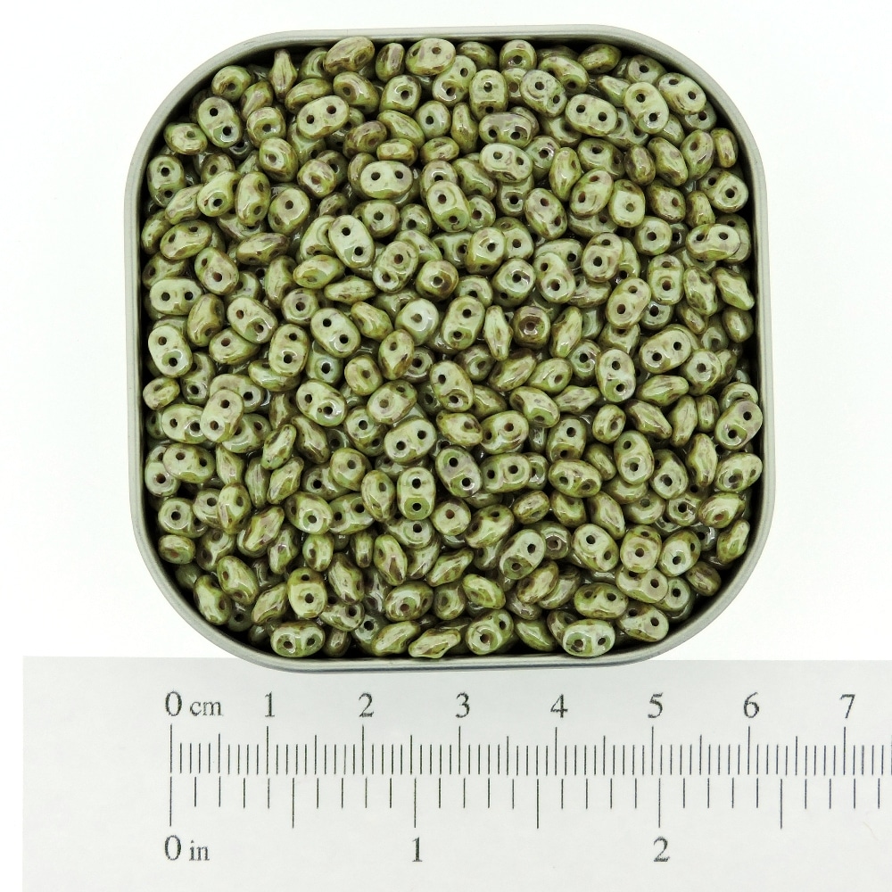 - SuperDuo Beads Chalk Lazure Green – 2-hole Czech Glass Seed Beads.