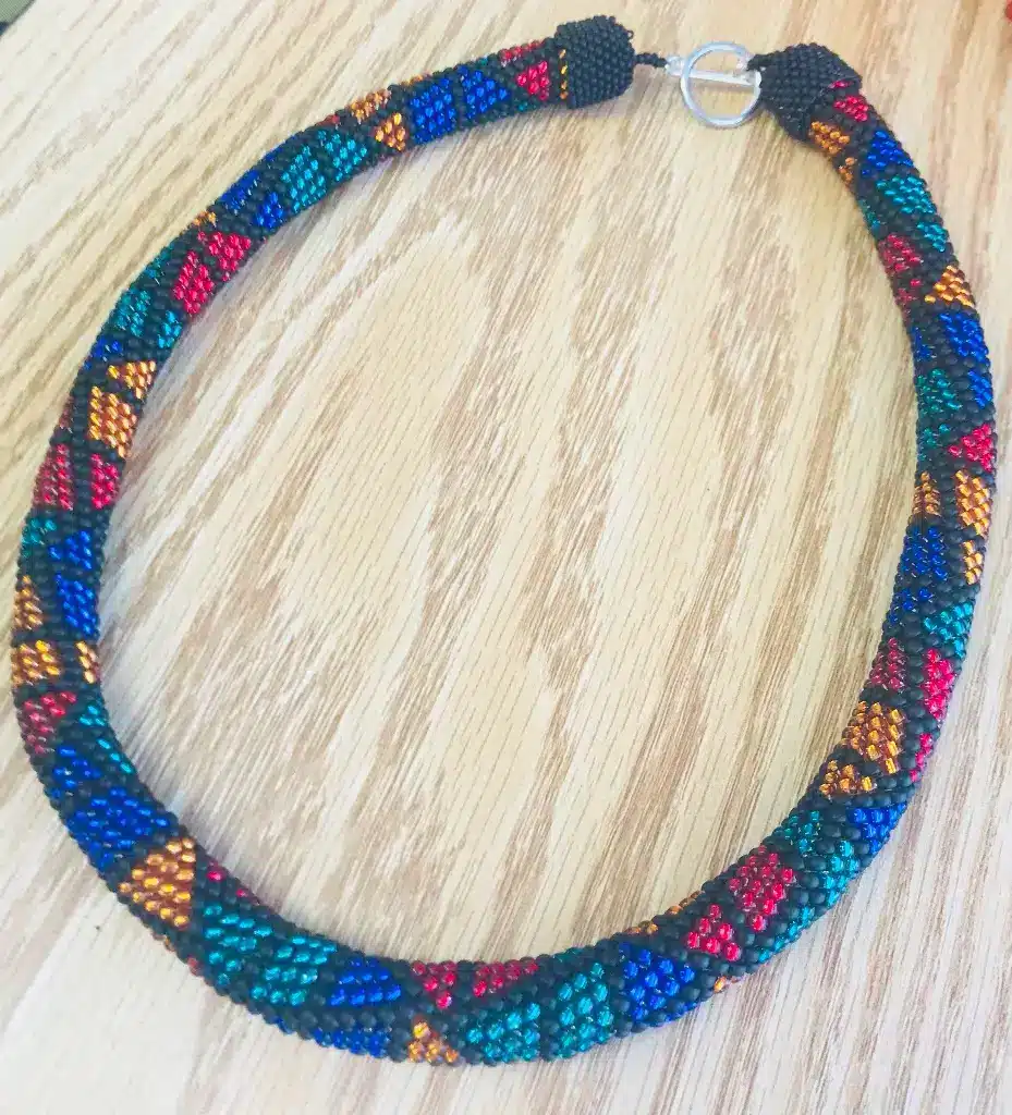You will need five different colors of size 8/0 or size 11/0′ seed beads.
