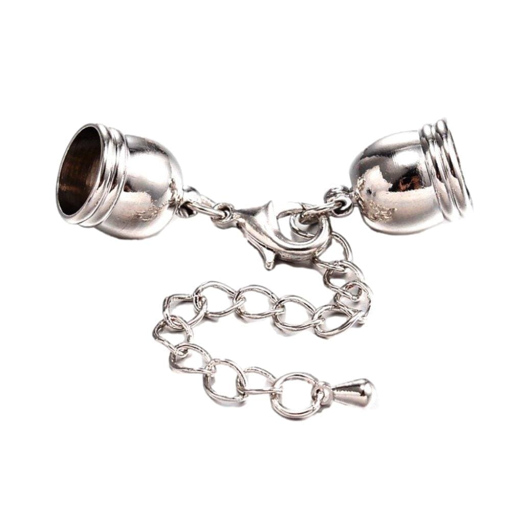 - Glue-in bell end caps with Lobster Claw Clasp and extension chain.