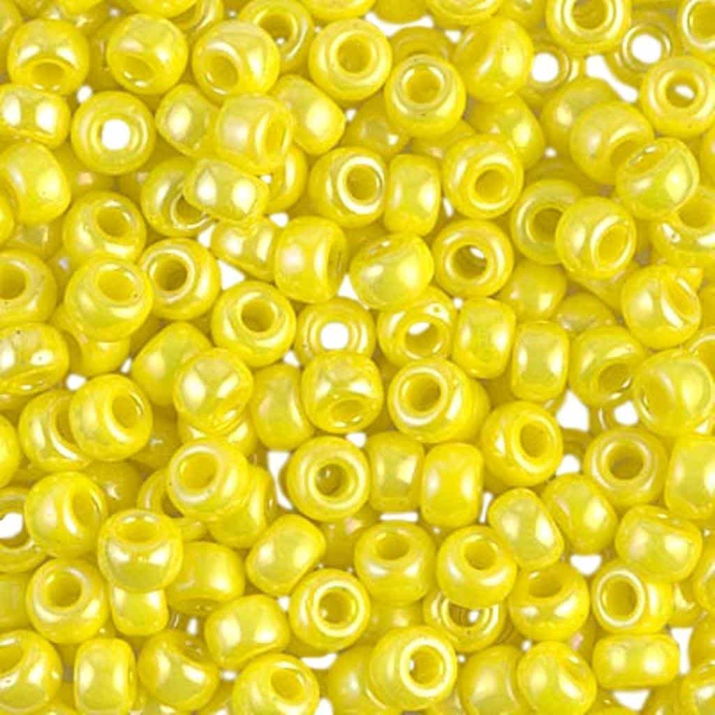 Miyuki Seed Beads Size 6/0 Yellow AB are uniform and high quality glass seed beads made in Japan. The large range of colors make them the go-to choice for craft projects calling for slightly larger seed beads.